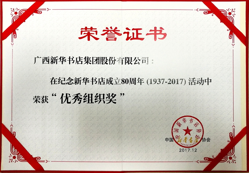 新华书店成立80周年优秀组织奖 (证书)