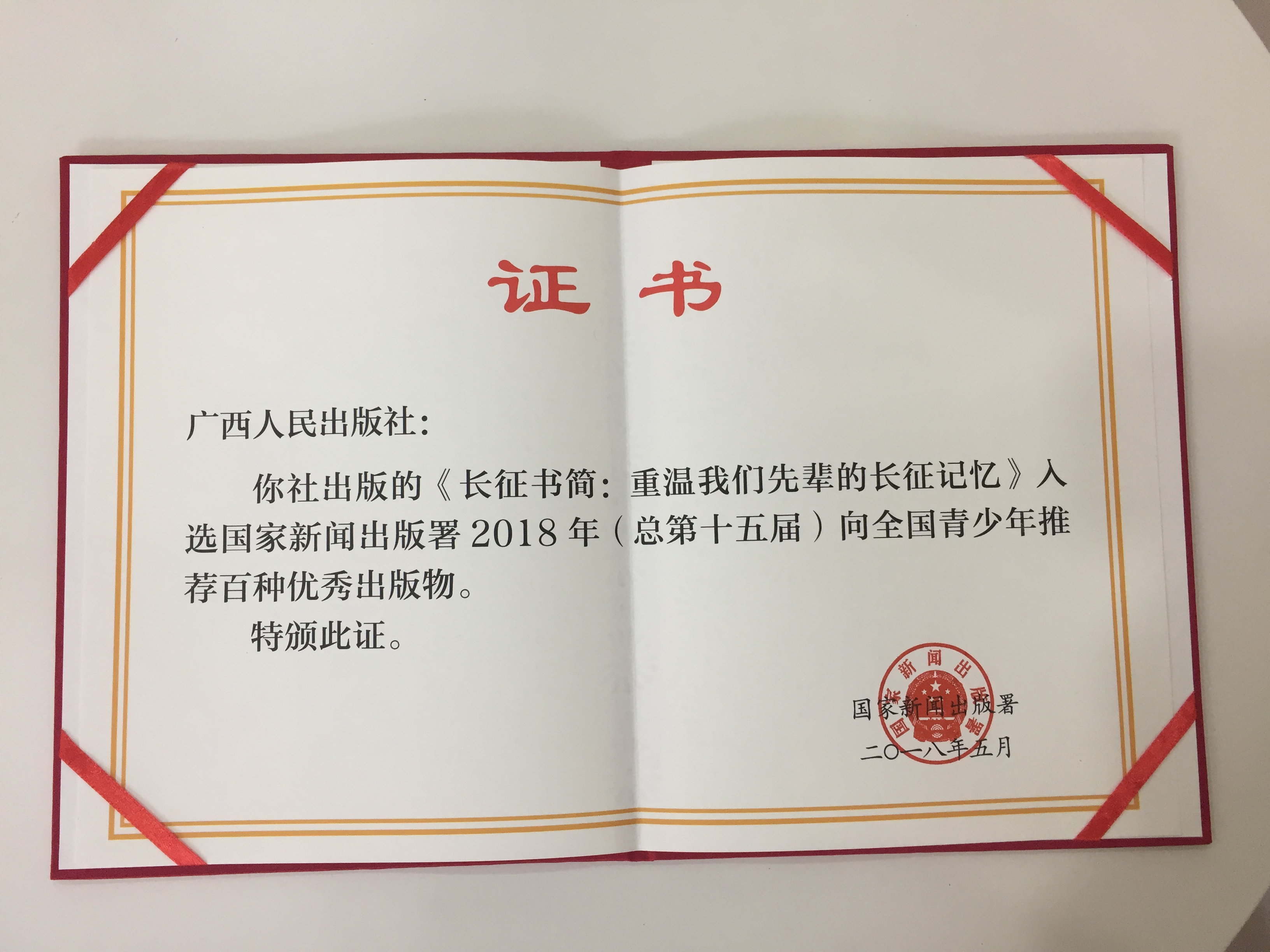 《长征书简——重温我们先辈的长征记忆》2018年向全国青少年推荐百种优秀图书