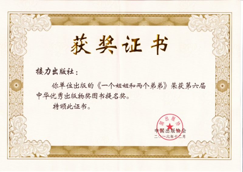 一个姐姐和两个弟弟-第六届中华优秀出版物奖证书