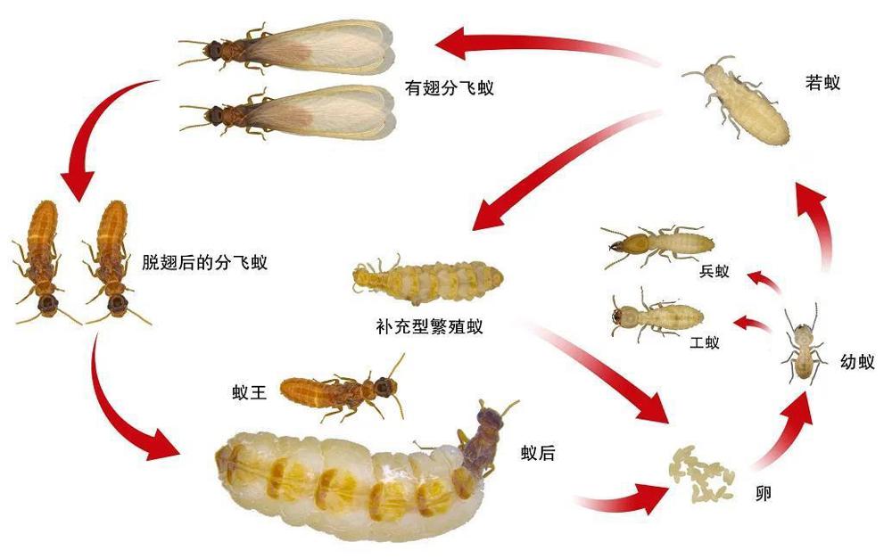 台湾乳白蚁生活史(南宁市白蚁防治所供图)